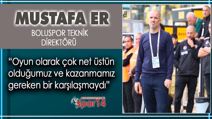 Trendyol 1. Lig’in 8. haftasında İstanbulspor’a konuk olan Boluspor, sahadan 1-1’lik beraberlikle ayrıldı. Karşılaşmanın ardından düzenlenen basın toplantısında konuşan Boluspor Teknik Direktörü Mustafa Er, "Son derece üzgünüz. Oyun olarak çok net üstün olduğumuz ve kazanmamız gereken bir karşılaşmaydı. Maalesef istemediğimiz bir neticeyle ayrılıyoruz. Aslında hem üzgünüm hem de mutluyum. Oyun olarak içeride veya dışarıda tüm rakiplerimize karşı üstünlük kuruyoruz. Pozisyon üstünlüğü kuruyoruz. Fakat ne yazık ki skor olarak karşılığını alamıyoruz. Oyuncularımızın verdiği emek için üzülüyorum gerçekten. Çok mücadele ediyorlar. Ne yazık ki üçüncü bölgede son dokunuşları yapamıyoruz. Son haftalarda oynadığımız maçlarda bunu gerçekleştirebilseydik şu anda liderdik. Ama ligin başından itibaren dominant bir oyun yapısını sahaya yansıttığımızı düşünüyorum. Bu şekilde devam edeceğiz. Final vuruşlarına biraz daha çalışırsak skor da almaya başlayacağız ama bugün ne yazık ki hanemize 2 puan kayıp olarak yazıldı" diye konuştu.